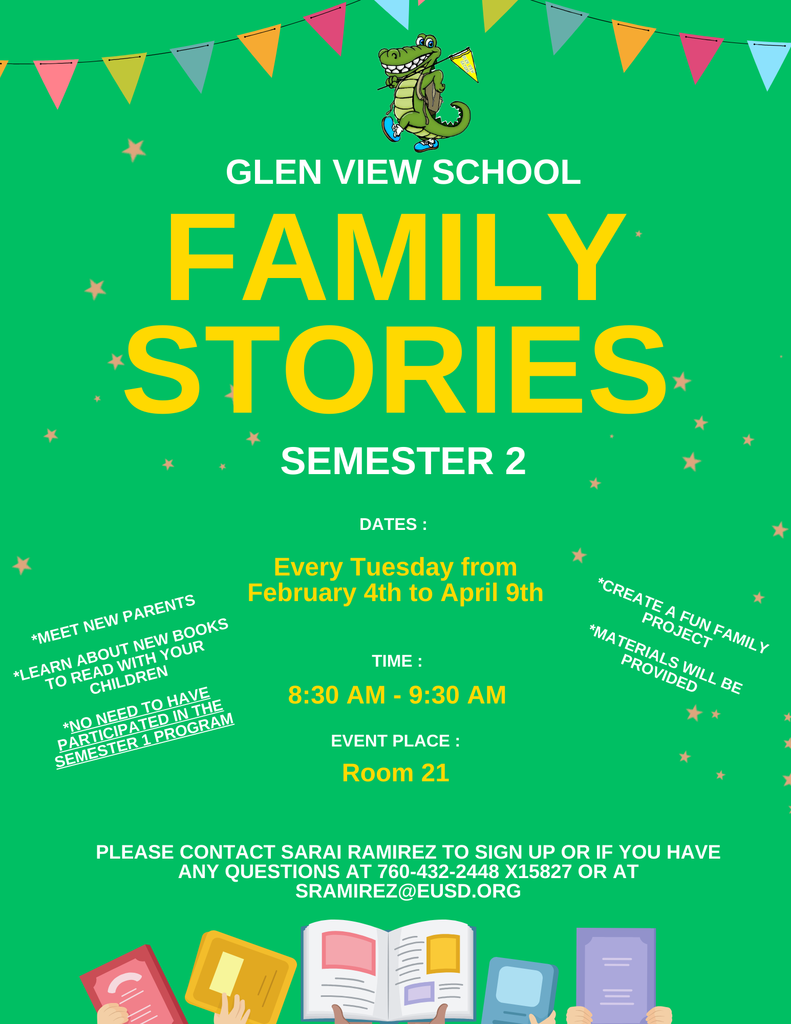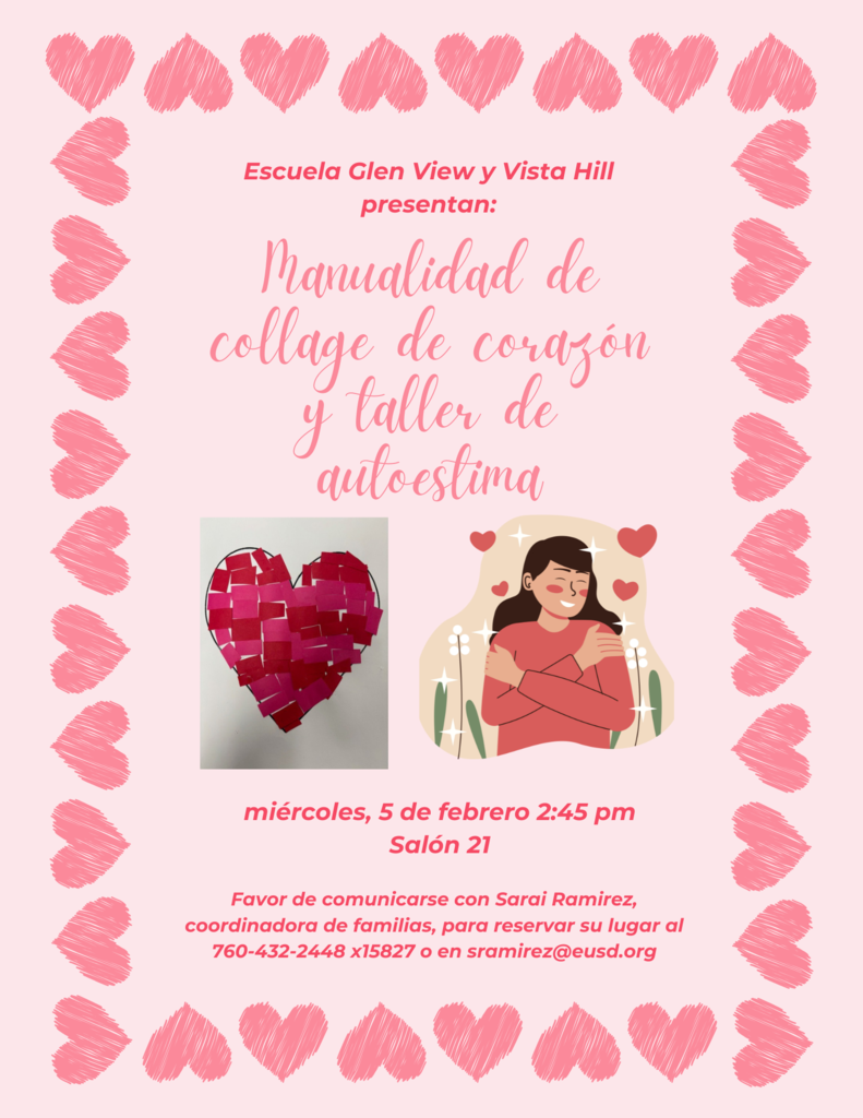 Please contact Sarai Ramirez, Family Liaison, for more information 760-432-2448 x15827 or at sramirez@eusd.org.